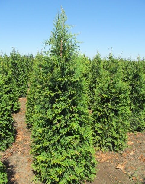Zone: 5 Height: 13m Width: 4m Thuja x 'Green Giant' The fragrant green foliage and broad pyramidal habit make it a suitable choice for a hedge or screen.