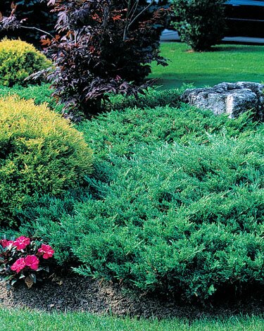 Zone: 4 Height: 0.3-0.6m Width: 0.9-1.2m Juniperus horizontalis 'Compacta' A low-growing, dense evergreen shrub with rich blue-green foliage, ideal for use as ground cover or in small landscape settings.