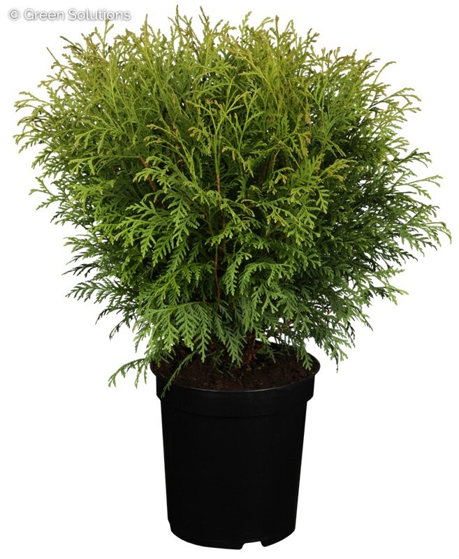 Zone: 3 Height: 0.6-0.9m Width: 0.6-0.9m Thuja occidentalis 'Little Champion' A compact, globular evergreen with rich green foliage, ideal for small spaces, borders, or as a decorative accent in landscaping.