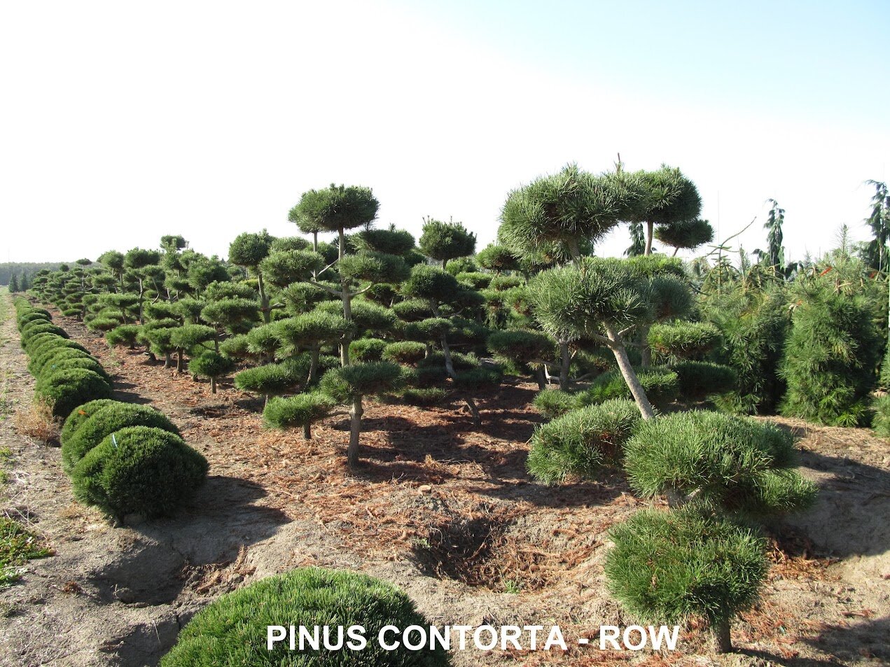 Zone: 5 Height: 200cm Width: 125cm Pinus contorta Dense green foliage can be layered into a poodle or Hindu-pan shape. A unique and interesting plant for the discerning gardener, offering the 'windswept' look with outstanding quality and form.