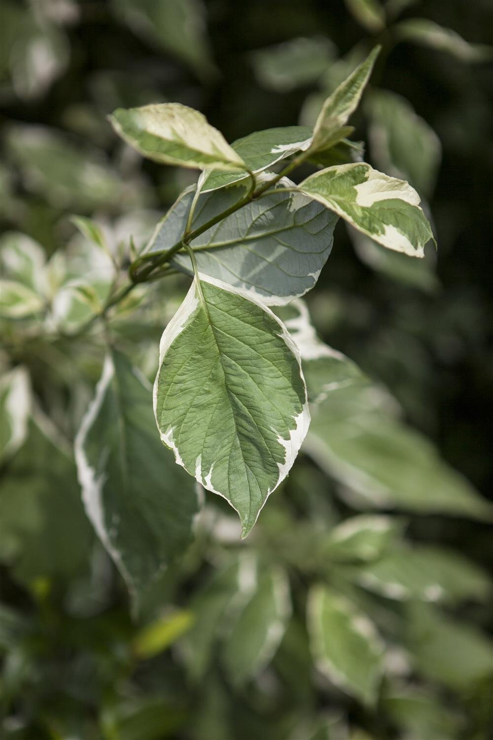 - General informationThe White dogwood 'Elegantissima' (Cornus alba) is a bushy, upright shrub with decorative, round fruits. It produces white flowers arranged in umbels from May to June. The White dogwood 'Elegantissima' also has egg-shaped, dark green leaves with a white e