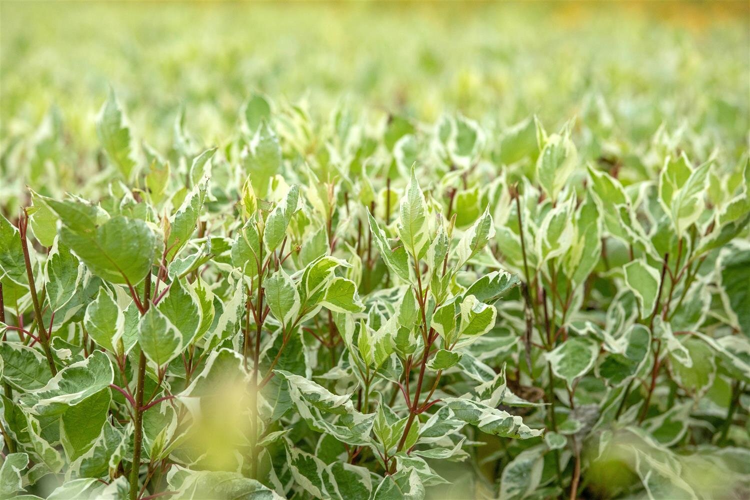 - GrowthWhite dogwood 'Elegantissima' is a bushy and upright growing shrub. It usually reaches a height of 2 - 3 m and is approx. 2 - 3 m wide. Rapidly growing. It usually grows 30 - 50 cm per year.