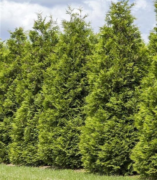 Zone: 3 Height: 3.7-4.6m Width: 1.8-2.4m Thuja occidentalis 'Techny' Adense, pyramidal evergreen with dark green foliage that holds up well in various climates, making it a popular choice for privacy screens, hedges, and windbreaks.